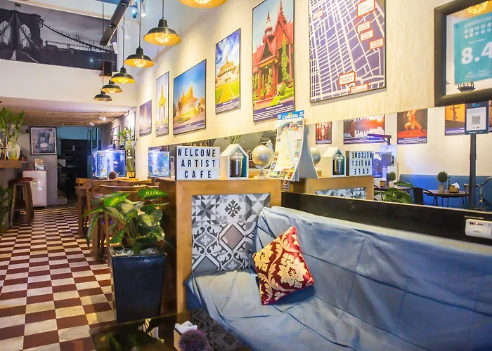 Cet hotel 3 étoiles se trouve à 20 minutes en voiture de l'aéroport international de Phnom Penh et à côté du Marché central. Dans Artist Residence de Phnom Penh, les clients seront à une courte distance de la rivière Mekong. Explorez les sites historiques de Phnom Penh en commençant par le Monument de l'Indépendance, qui est situé à 750 mètres. Bien relié à Cambodia Post, qui se trouve à 4 km, l'hotel se trouve à seulement 10 minutes à pied de Giant Ibis Gold VIP Transport Night.